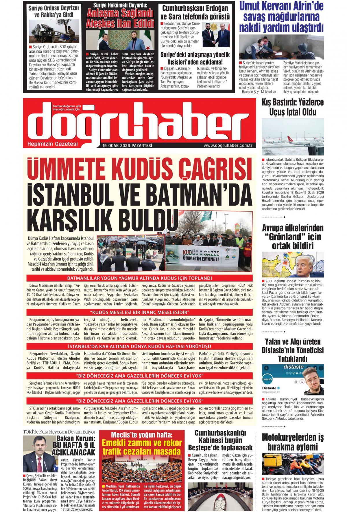 Doğru Haber Gazetesi 19 Ocak 2026 Günü Manşeti