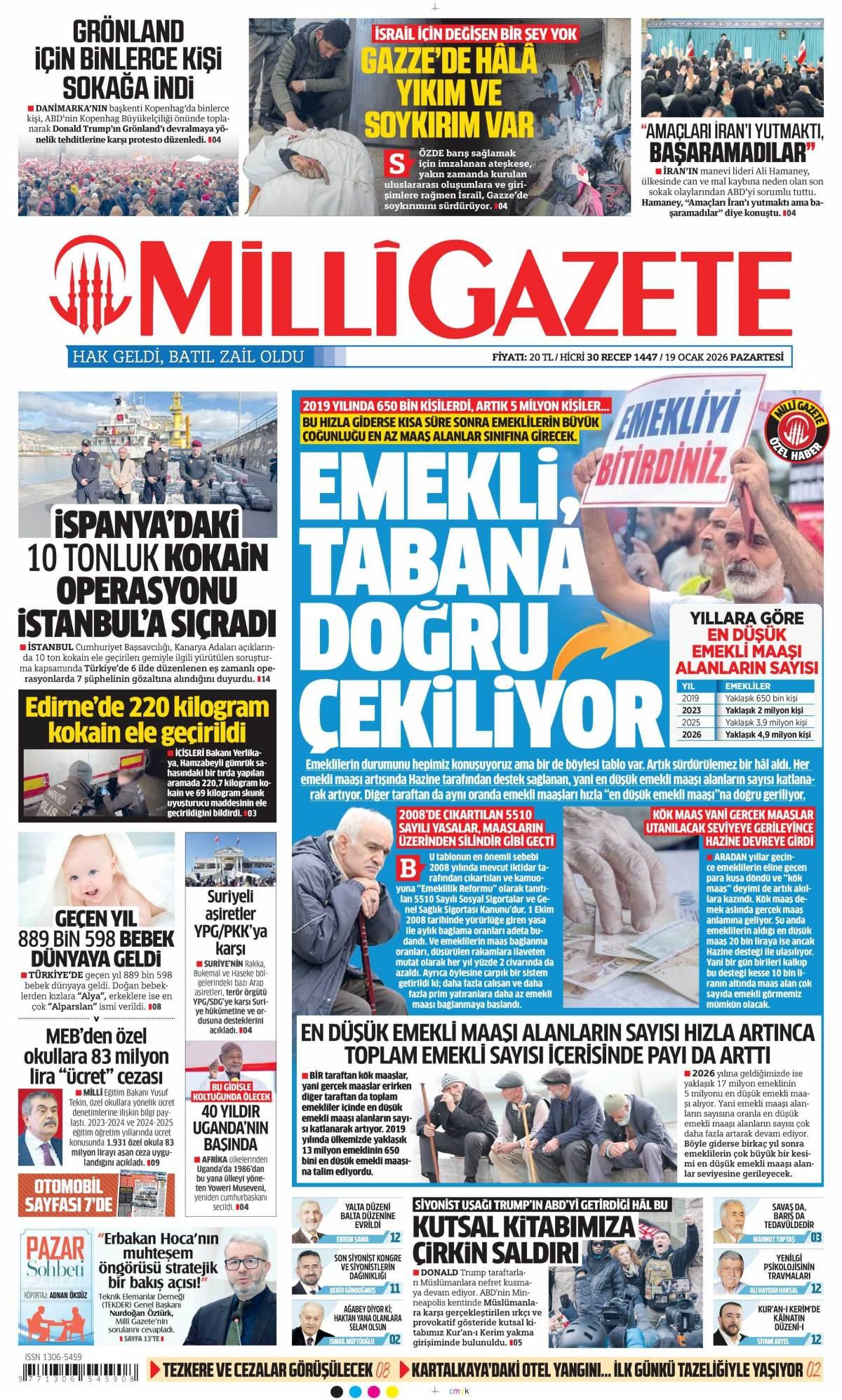 Milli Gazetesi 19 Ocak 2026 Günü Manşeti